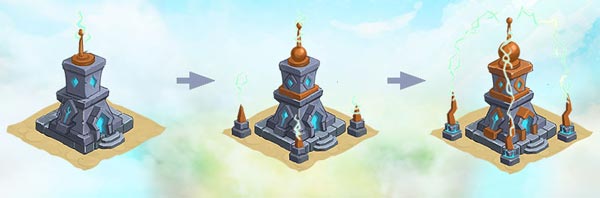 巨大的电流以弧形穿梭在高耸的尖塔之上,狂暴的电流被约束在元素塔中,通过吸取其中的雷电元素可以帮助电属性龙提升力量。