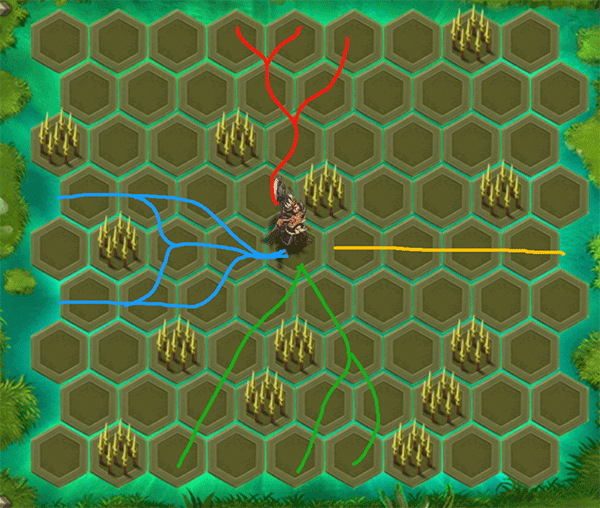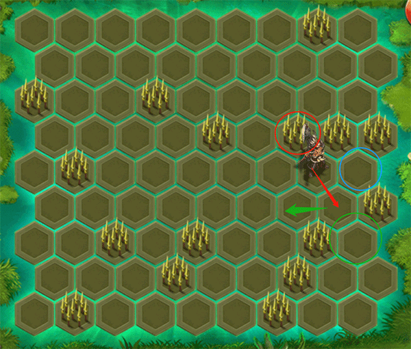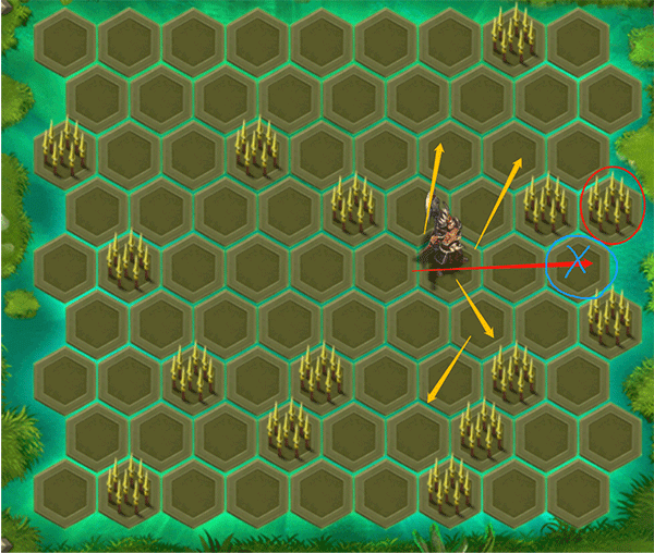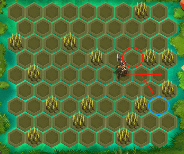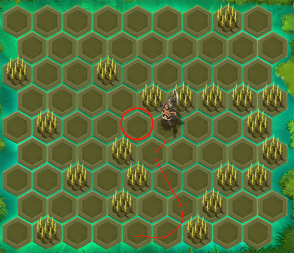 从图上不难看出,如果下移或者左移,目测都很容易封堵,难的是右侧,开面比较大。我们第一步,先勾引他往右侧移动,就是不把他右边直线出去的位置堵住。