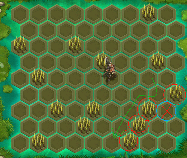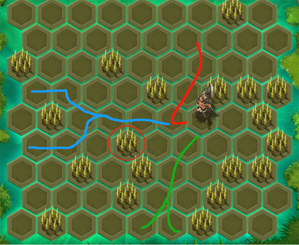 如上图所示: 下一步我们不可以走蓝色叉叉的位置, 这样会造成脱出方向不可控!所以我们需要用下图的方法,再忍一步!