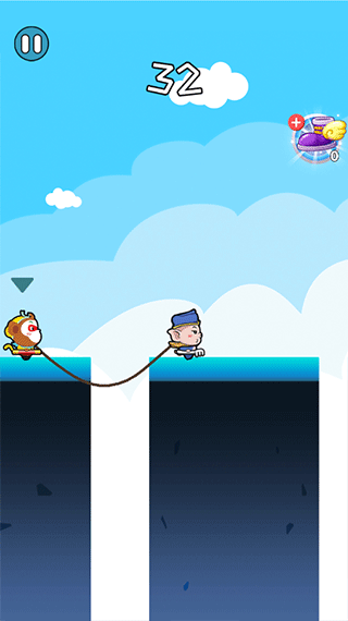 4、游戏中有两个角色,大家点击屏幕即可操控角色,如果一个角色掉下去也没关系,只有两个都掉下去才算游戏结束。