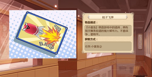 剧情概况:剧情是从艾斯、张宝、张梁、小莉在小莉房间玩《小富翁》游戏开始的。话说某天艾斯和张宝、张梁、小莉一起在房间玩《小富翁》(其实也就跟我们童年玩的大富翁游戏差不多)。游戏里面各种道具横飞,遥控色字、陷阱卡、背锅卡。但是游戏的转折点就是从艾斯使用核子飞弹开始的。游戏玩到胶着状态时,艾斯对小莉使用了核子飞弹,企图炸毁小莉整条商业街的建筑,但是被小莉用了时光机卡牌给避免了损失。在艾斯、张宝、张梁三人不断撕逼,抢夺地盘的时候,小莉猥琐发育,囤积了一大把的实用卡牌,最后利用了核子飞弹道具卡牌赢得了最后的胜利。