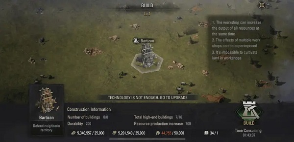 您可以在领土上建造许多建筑物。您将首先建造的建筑之一是资源建筑。这些建设将进一步增加该地区的资源产出。