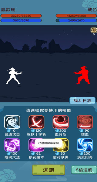 首先,用血刀斩给他挂一个流血效果!
