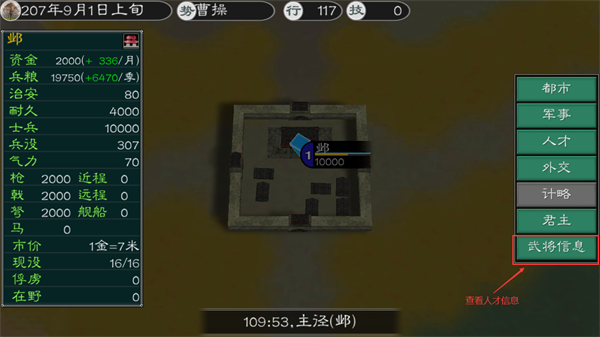 所拥有的武将、人才是发展城池的基础,这也就是为什么大型势力游戏难度比较低的原因,毕竟人才多嘛~所以我们在进入游戏后,先确认下我们的人才,看下有没有“野人”,就是在我们的领地中,但是没有为我们所用的人。