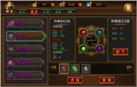 玩家需要开孔来镶嵌宝石,不同的孔只可以镶嵌该类型的宝石,目前有4类宝石:热情宝石、勇敢宝石、天命宝石、智慧宝石