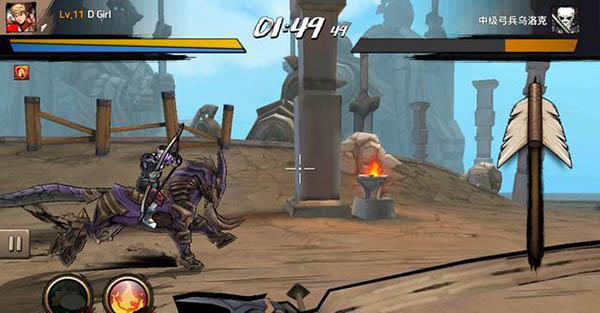 应用了陀螺仪感应器的操作方法,将游戏设备倾斜,移动准心来锁定目标,向下拖动弓箭就可以搭箭。除了拖动式弓箭武器以外,还有安装式石弓,石弓是自动搭箭系统,所以搭箭完成后就如射击类游戏开枪一样只要点击相应界面就可以射箭。