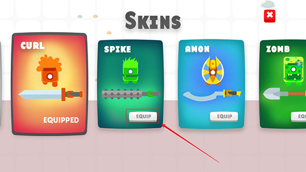 3、点击【EQUIP】按钮可以获得对应的皮肤。