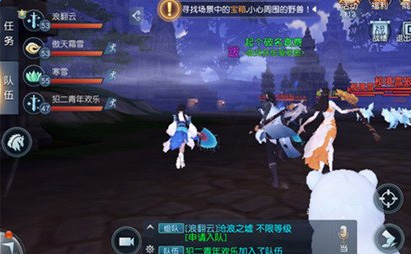 与另外的两个副本不同,玩家在进入沧浪之墟场景后,玩家会在屏幕中看到寻找场景中的宝箱字样以及蚩尾出现倒计时等字样。在沧浪之墟中,玩家需要击杀当前的怪物,然后获取可以打开洒落在地上的宝箱。其中所需要击杀的怪物分为秘境雪狼、秘境蝶灵、秘境猛兽,击杀这些怪物十分的简单。队伍如果击杀效率够高,可以获得更多的秘境奖励。