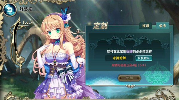 4、 好感度达到4级,就可以定制角色的必杀技咯。