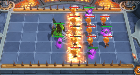 火法队则是以格拉斯为核心的法师队伍,依靠召唤炎魔大军使用【炎魔之舞】来输出高额伤害。阵容相当依靠燃烧地面来无穷尽的召唤炎魔,所以需要搭配能产生燃烧地面的佣兵,比如火山领主,火焰天使等。但是前期炎魔召唤物属性较低,比较被aoe伤害克制,并非前期首选阵容。输出演示: