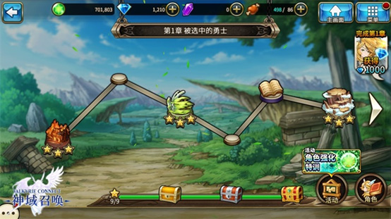3.当完成冒险第一章后,可以直接获得1000宝石做为奖励(通常完成了这个以后已经可以愉快的进行一次十连抽了)。
