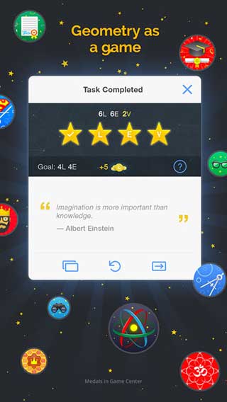 不要担心花费时间和精力试图实现完美的精确度,因为Euclidea自动处理通过钉扎点,线,圆到应用程序的干净的界面,任务。