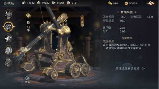 攻城打地打城皮、打耐久专用,配合枪兵拆迁队,能大幅提高队伍的拆迁值,在攻城战中不可或缺;