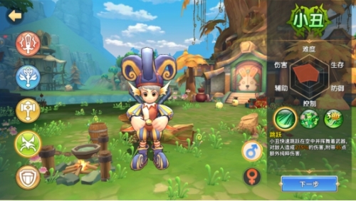 小丑:这是一个崇尚自由信仰的奇特职业,小丑的魔力和攻击力都很平均,但动作又很迅速敏捷,他们善于使用有趣又搞笑的技能。能够远距离投掷飞刀对敌人造成伤害,同时也拥有许多辅助性的技能。他们的能力值属性以敏捷、智力、精神为主。