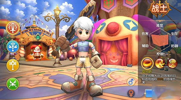 这是一个崇尚自由信仰的奇特职业,小丑的魔力和攻击力都很平均,但动作又很迅速敏捷,他们善于使用有趣又搞笑的技能。能够远距离投掷飞刀对敌人造成伤害,同时也拥有许多辅助性的技能。他们的能力值属性以敏捷、智力、精神为主。