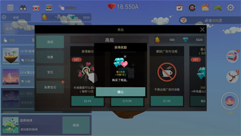 1、点击来获得爱心:绿洲要生长需要爱心,我们可以通过点击来直接获得爱心,随着爱心的点击,绿洲会升级有更多的建筑。