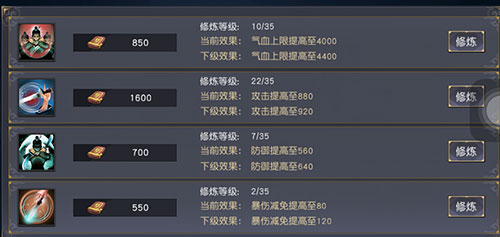 演武堂目前有4种修炼可供选择,并且相互不冲突