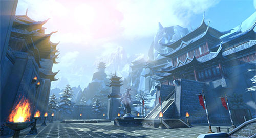 凌霄城位于白山天池之滨,雄踞东北凄寒之地,群山中极其旷阔的视野,因其地理位置的缘故,因此终年白雪皑皑。城墙高楼被满满的白雪覆盖,让凌霄城给人一种肃穆庄严、大气磅礴的感觉。凌霄城主望月老人德高望重,自诩为江湖中的一朵清莲,然而却因其热衷权势,优柔寡断,与雪山圣域冰灵谷亦有剪不断理还乱的恩怨情仇。凌霄城门下武功以刀法见长,高手遍布黑白两道,一手连绵不绝的刀法,在电光石火之间就能杀敌至片甲不留,是游戏裡持续输出最高的门派之一。