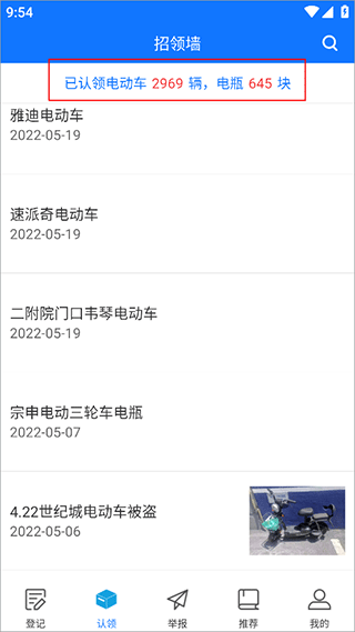 2、如果你丢了车,可以在认领这里浏览一下,如果你的车被找到,会被发布在这里