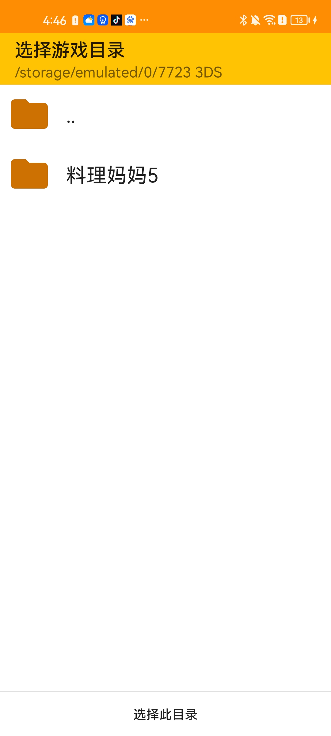 2、在目录中开【7723 3DS】进入【料理妈妈5】在此文件夹下方点击选择此目录