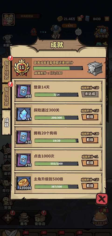 在黑市商店中有各种各样水晶直接兑换,使用的货币就是点券,如果遇到有超低折扣一定要拿下。此外在游戏中达到各种程度都能够获得相应成就,例如登累计登录天数,探险通过指定关卡,拥有一定数量的狗将等,都能在成就里达到相应奖励。其中除了积分之外,很多成就达成之后也都会有水晶道具赠送,绝大多数都是蓝水晶。也就是说绝大多数获取的都是等级比较低的类型,如果想要获得红水晶橙,水晶这样高品质,通过积分方式才是最稳妥的。
