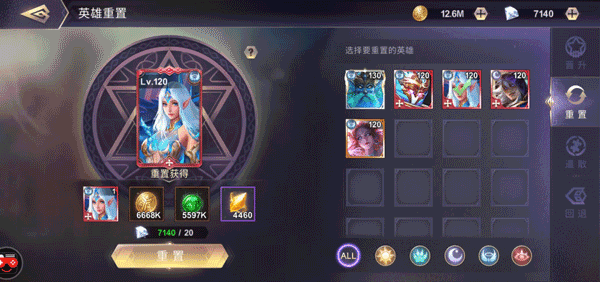 如果领主对于现有英雄的表现并不满意,还可以对英雄进行重置。只需要在重置界面花费少量钻石,培养该英雄的所有资源便会全部返还,资源可以用来重新培养其他英雄。