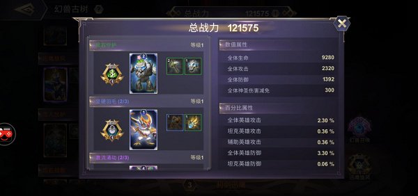 收集完整的幻兽和对应装备后即可激活幻兽,给领主提供更多的属性加成。不同的幻兽对于不同的英雄有加成,可以根据当前的英雄阵容来决定培养哪些幻兽,幻兽也可以继续升级。