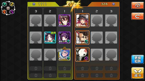 3、同行没有对阵角色或击败同行对手后,战斗单位会换行走到邻行协助队友战斗,形成暂时的人数优势。
