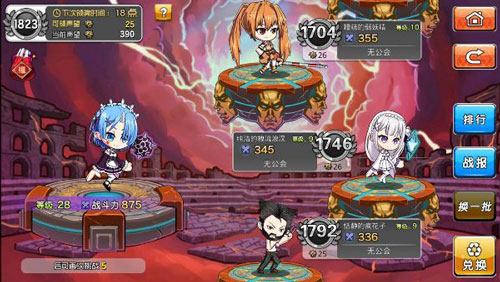 2、竞技场(5级开启)也就是《次元大乱斗》独具特色的“阶梯型竞技场”。以排行榜的形式进行,玩家可以挑战排名高于自身的玩家,胜利之后与其在排行榜上的位置互换。在排行榜上占据一定的时间可以获得稳定的声望奖励。声望可以在竞技场商店中购买到特殊道具。部分卡牌、装备、技能只能通过竞技场商店进行兑换。