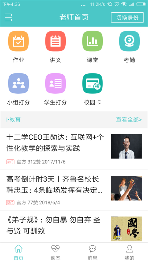 4、海量教育资讯:【教育】板块每日更新,提供海量教育资讯,内容涵盖教育政策,名师交流,教学案例分析等,老师们可以点赞并发表您的真知灼见。