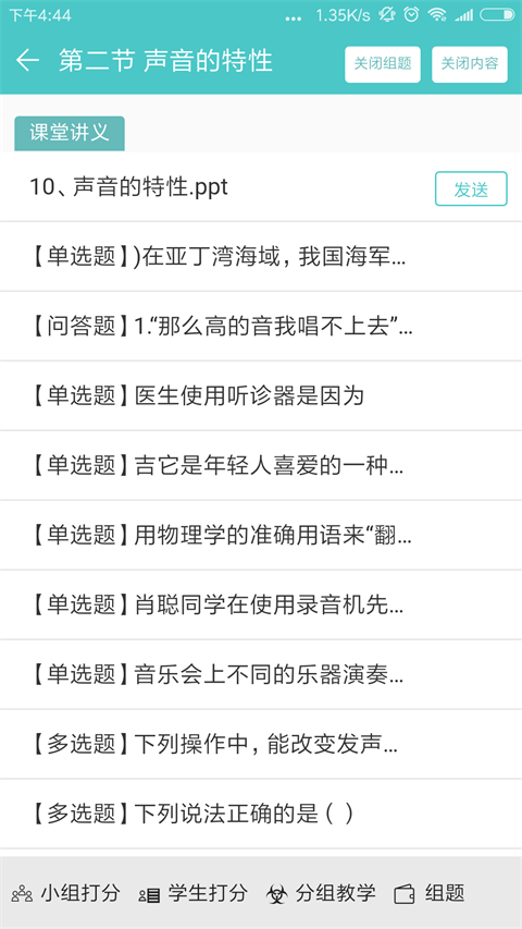 3、给各小组下发教学任务。选择教学内容分发给各个小组,老师可任意组合。