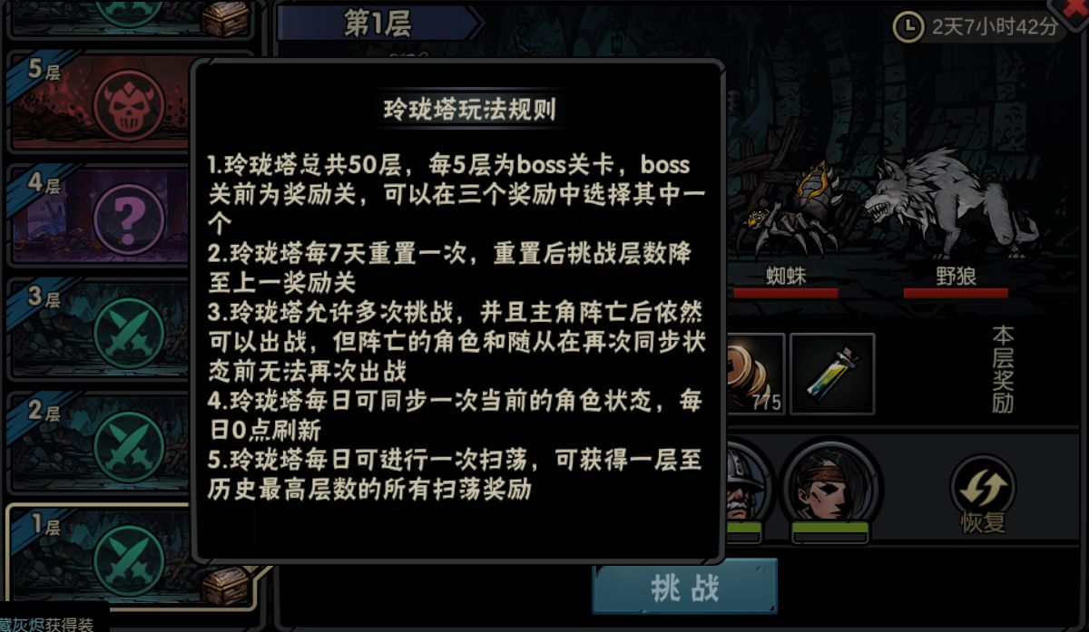 2.玲珑塔每7天重置一欠,重置后挑战战层数降至上一奖励关