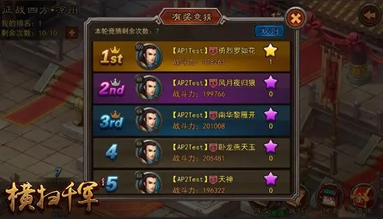 问鼎天下不仅成为《横扫千军》的一个新式PVP体验,而且主公将获得对应实力的排行评定,在问鼎天下登陆界面将展示跨服的实力王者信息,受到全服玩家瞻仰。同时获胜者的奖励也异常丰厚,绝对的名利双收!