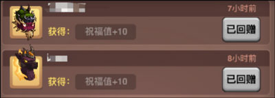 对好友进行祝福或是被祝福都可获得相应祝福值,接受祝福获10点,祝福好友获2点。