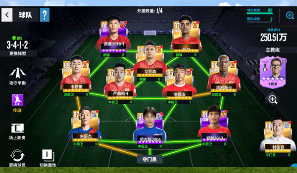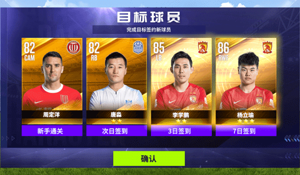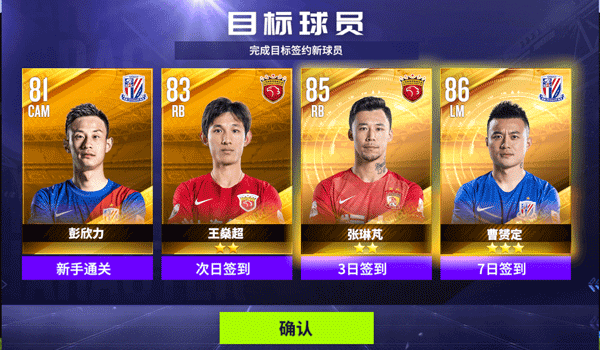 7、初期参与活动获得前期三张紫卡球员,再配合着教练阵形加成,两周时间很快就会成型,并且默契值百分百哦让阵容实力拉满,当然守门员也可以换成申花的曾诚。