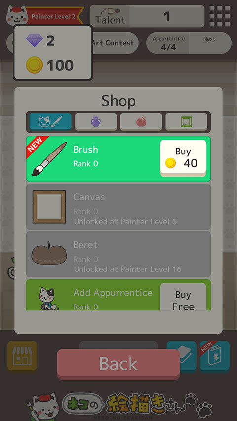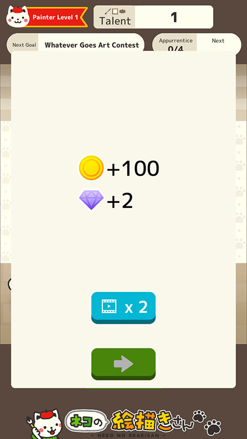 1、首先,玩家所扮演的小猫画家需要指导其它画家的画作,【点击其它画家】来尝试挑战。