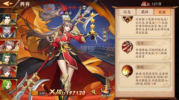游戏中玩家扮演少城主,招募三国名将组成阵容征战天下。职业分为护卫、先锋、统帅、辅助、谋士和刺客,每个职业都有独特的技能和定位,搭配策略丰富多变。比如护卫是前排坦克,负责吸收伤害;先锋则擅长近战输出;谋士则是后排核心输出。