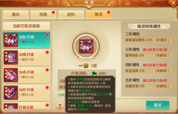 6、副本产铸灵系统所需材料【灵玉】,通关一定层数后即可解锁对应部位的铸灵以及相应的铸灵阶数