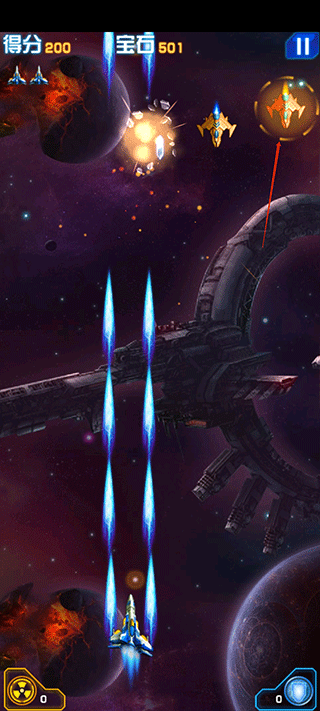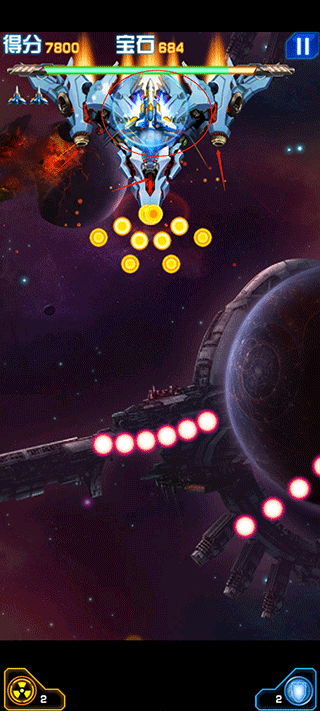 1、精致关卡设计,多种华丽弹幕特效炫酷无比;2、丰富的boss遭遇战,击杀获取大量资源解锁全新战机;