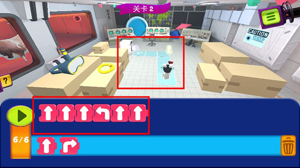 1、在游戏中,玩家主要控制兔子,清理白占据的飞船,并给兔子下达指令执行。2、3D可爱风格,当然,主角是愚蠢的可爱兔子,玩家需要在不同级别发送精确的指令来引导兔子通过。
