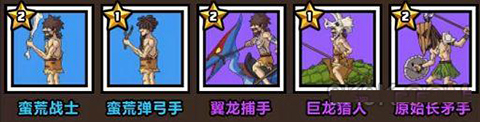 1、最强阵容推荐一:蛮荒战士、蛮荒弹弓手、翼龙捕手、巨龙猎人、原始长矛手