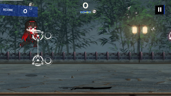 2、开始作战,点击圆圈是跳远,可跳跃劈开空中的音符,也可跳跃击杀空中的敌人。