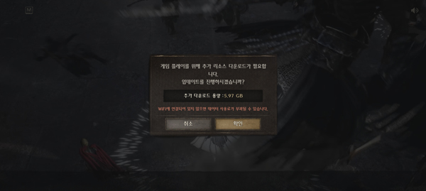 1、打开夜鸦手游,即Night Crows,游戏需加速器启动,并且开始前还想下载5.97G的数据文件;