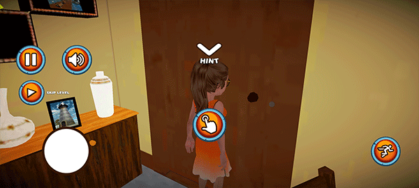 3、通过滑动小女孩,当你走到门口时点击手指键即可开门,点击▷可以快速过剧情,右侧的人物即代表奔跑。