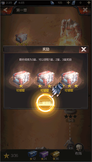 4、看清楚提示后可以点击“迎击”来挑战此关卡,重玩的话会出现布阵的按钮;