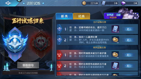 2、审判试炼任务