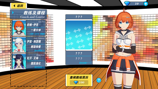 3、老婆养成:游戏中玩家可以通过完成健身任务来进行角色养成,解锁不同的教练、服装和动作。