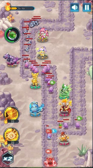 在这里你不仅可以看到魔兽世界中的伊利丹、希尔瓦娜斯女王,还可以看到七龙珠里的超级赛亚人等等角色,这些角色全都化身萌萌哒的塔防精灵为你作战,各种精灵都有各自不同的攻击方式,因此玩家需要根据他们的特性规划战术,结合各种技能来打败敌人。