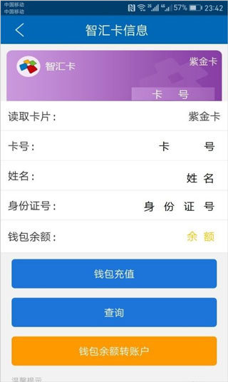 1、支持NFC手机通过智汇APP将个人智汇卡、市民卡的卡片余额转移至用户的智汇账户;2、支持智汇账户之间的资金互转;