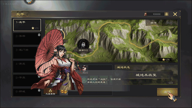 3、这里需要玩家点击将领,点击出征按钮,再关闭界面;